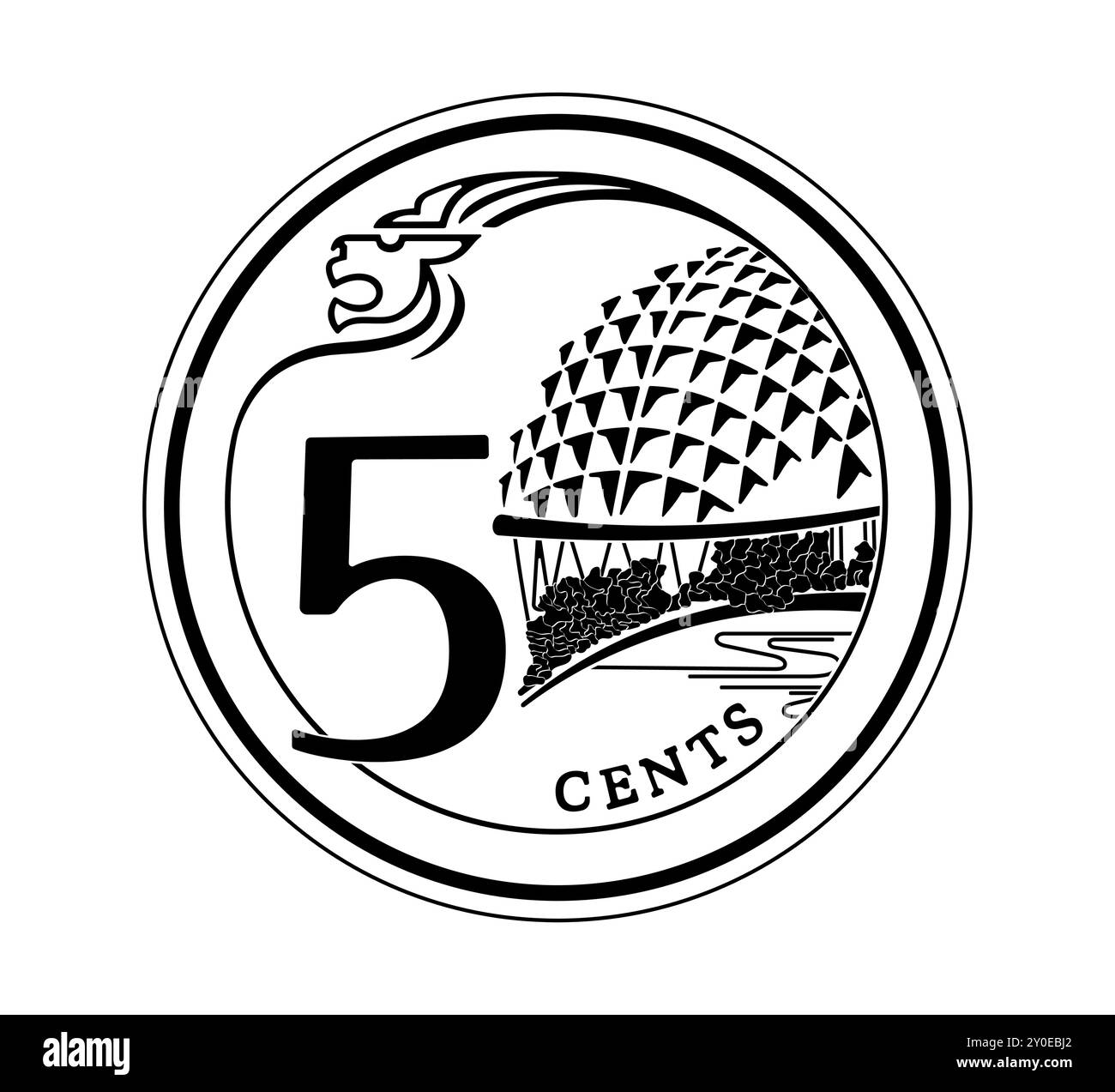 Reverse of 5 cents 1992–2012 years, Singapore. The coin is depicted in