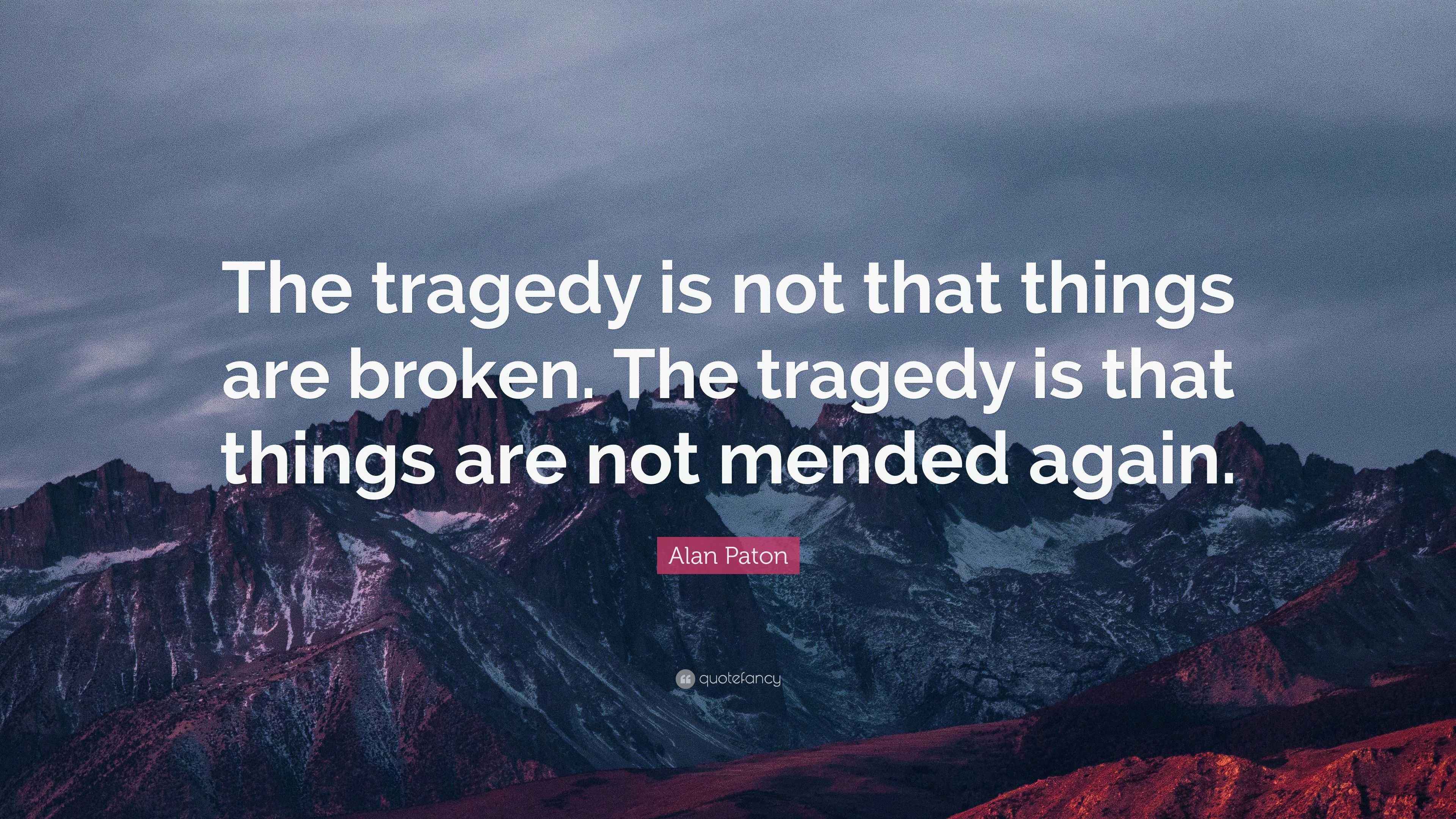 Alan Paton Quote: “The tragedy is not that things are broken. The