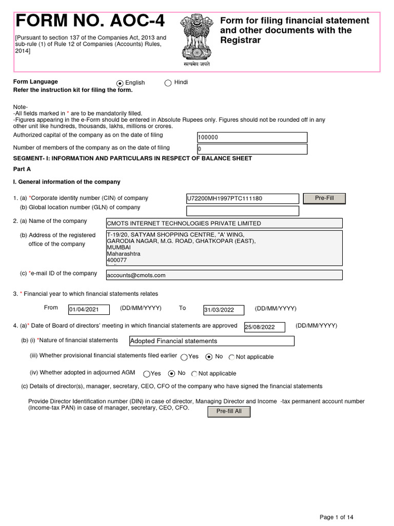 Form AOC-4-08112022 - Signed | PDF | Loans | Expense