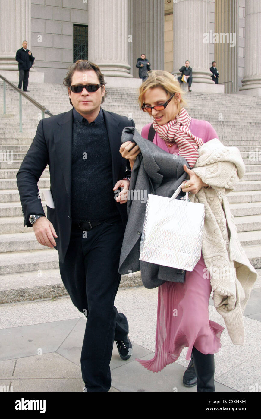 Arpad Busson and Uma Thurman depart the New York City Supreme Court for