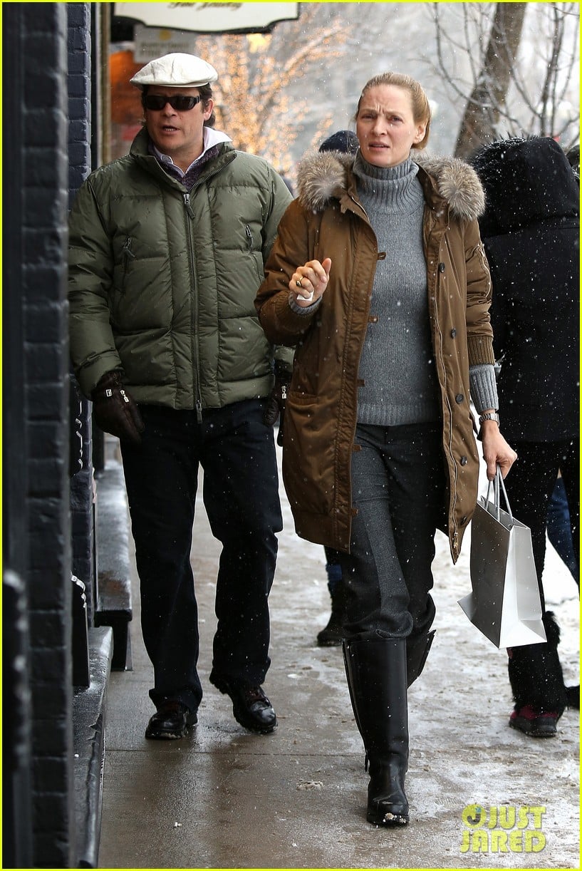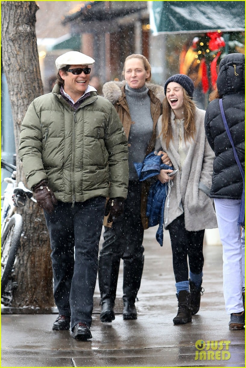 Uma Thurman & Arpad Busson: Snowy Aspen Stroll with Maya!: Photo