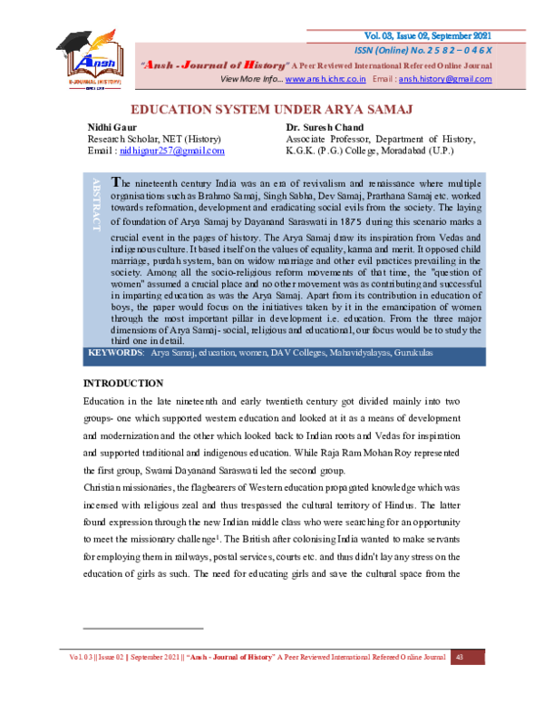 Arya Samaj Swami Dayanand Saraswati Birth Anniversary: Education System