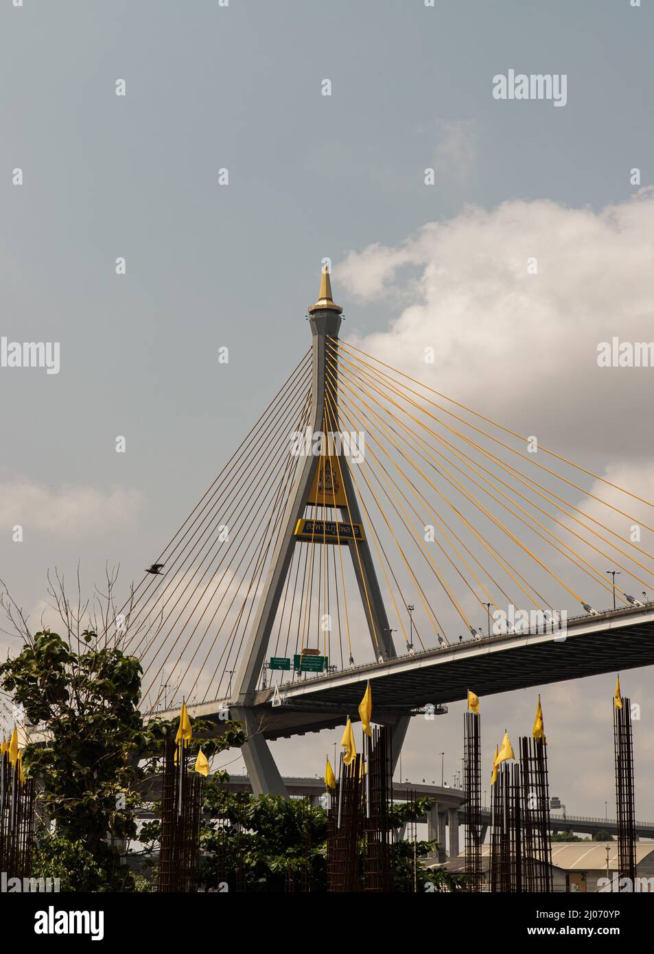 Bangkok, thailand - 12 Mar, 2021 : Bhumibol suspension bridge cross