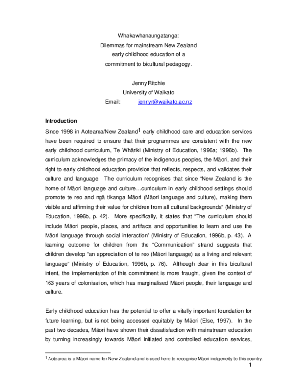 (PDF) Whakawhanaungatanga: Dilemmas for mainstream New Zealand early