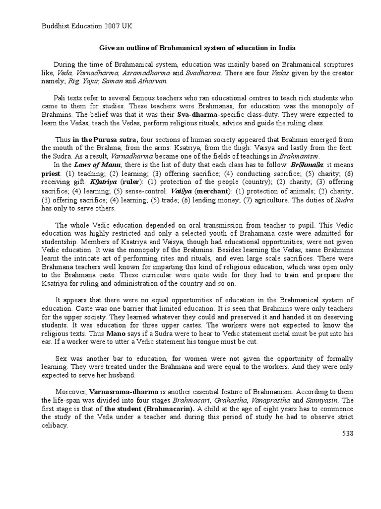 1 - Give An Outline of Brahmanical System of Education in India Ok