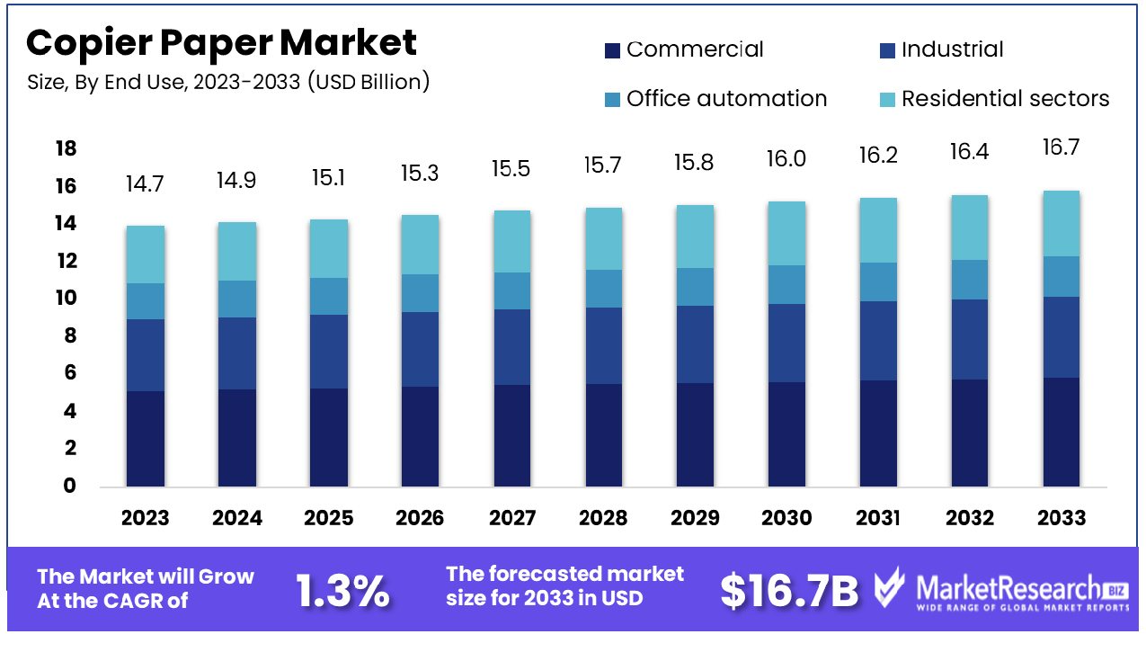 Copier Paper Market to Reach USD 16.7 Billion by 2033, Growing at 1.3%