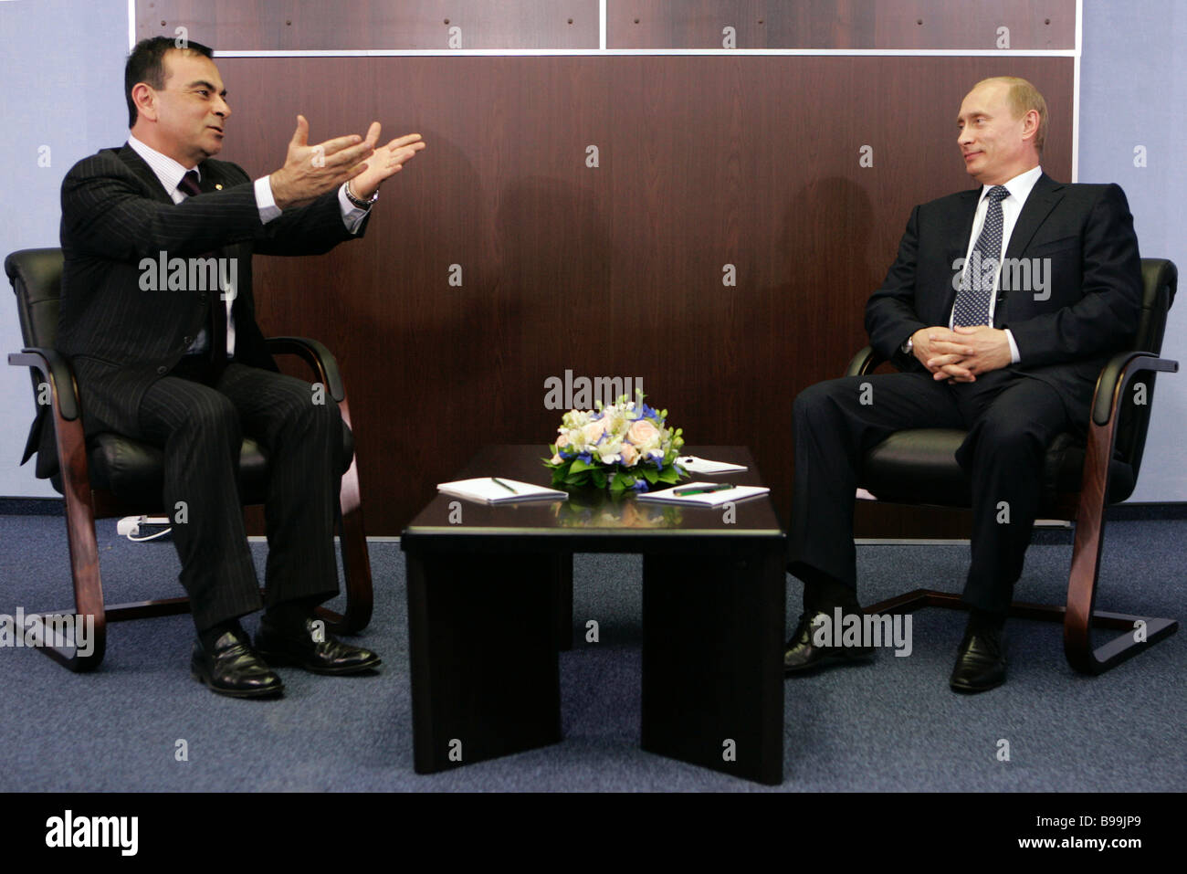 Nissan Motor CEO Carlos Ghosn and Russian President Vladimir Putin left