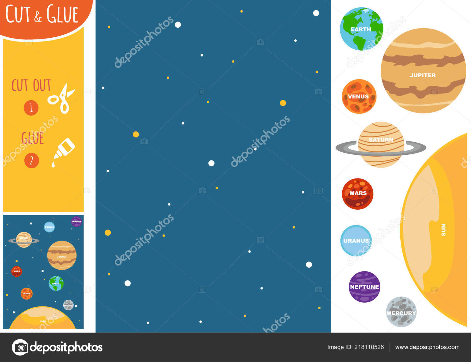 Education Paper Game Children Solar System Planets Use Scissors Glue