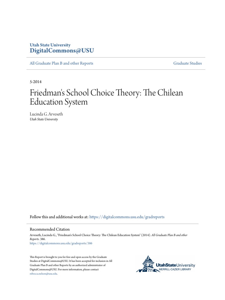 Friedmans School Choice Theory - The Chilean Education System | PDF