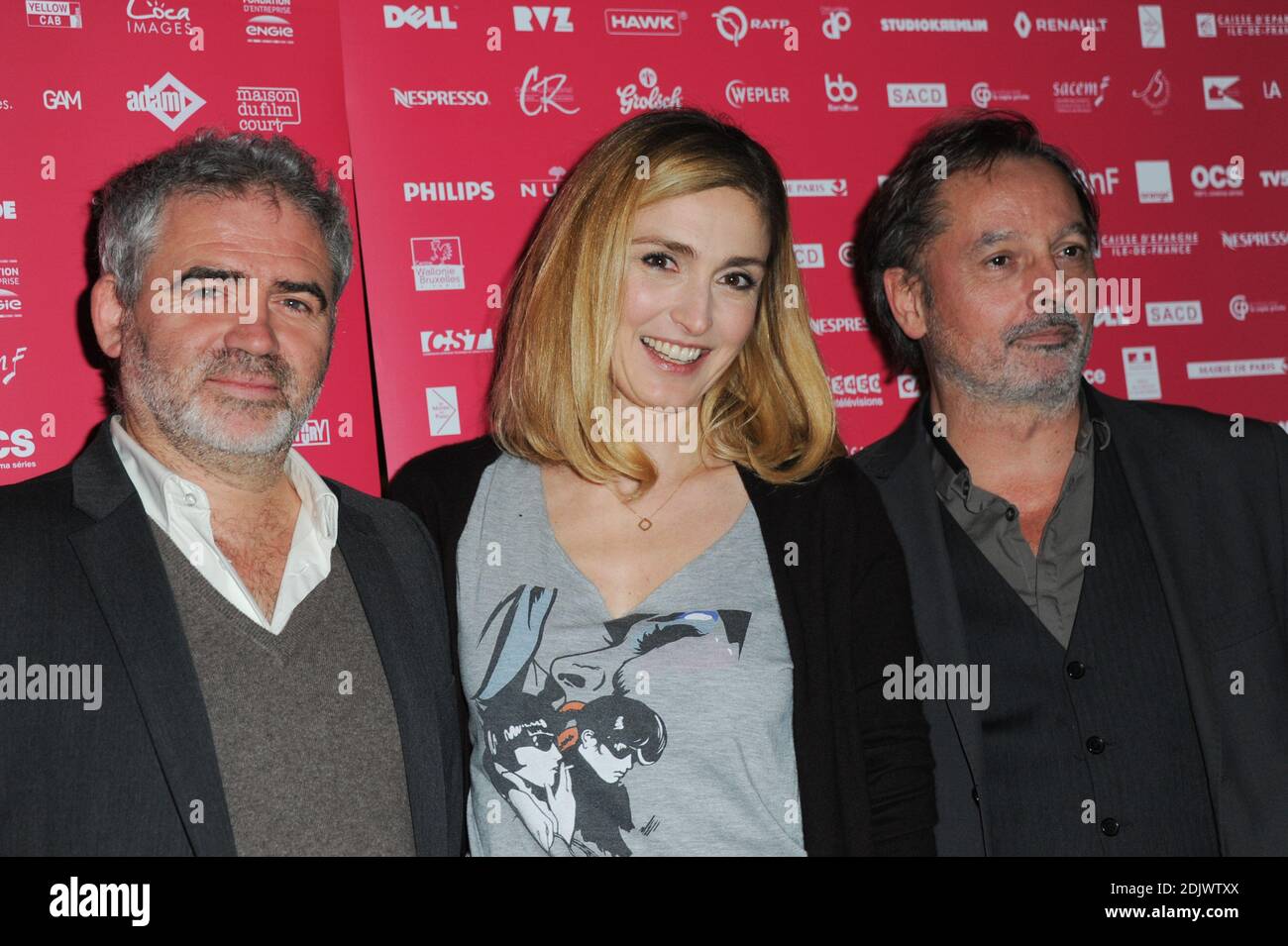 Stephane Brize, Julie Gayet and Christophe Aleveque arriving to the