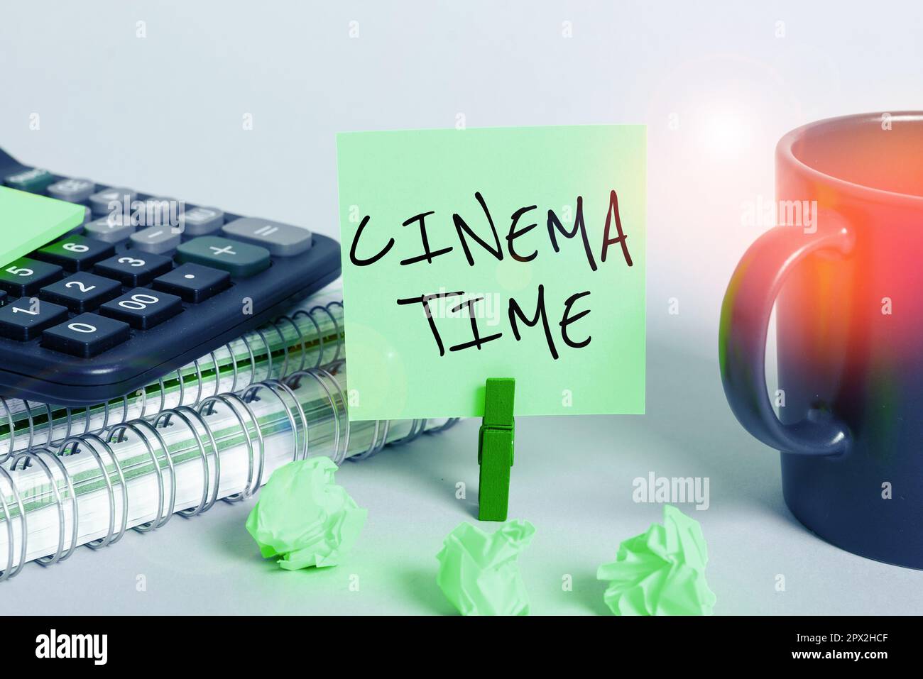 Conceptual caption Cinema Time, Concept meaning which entertainment