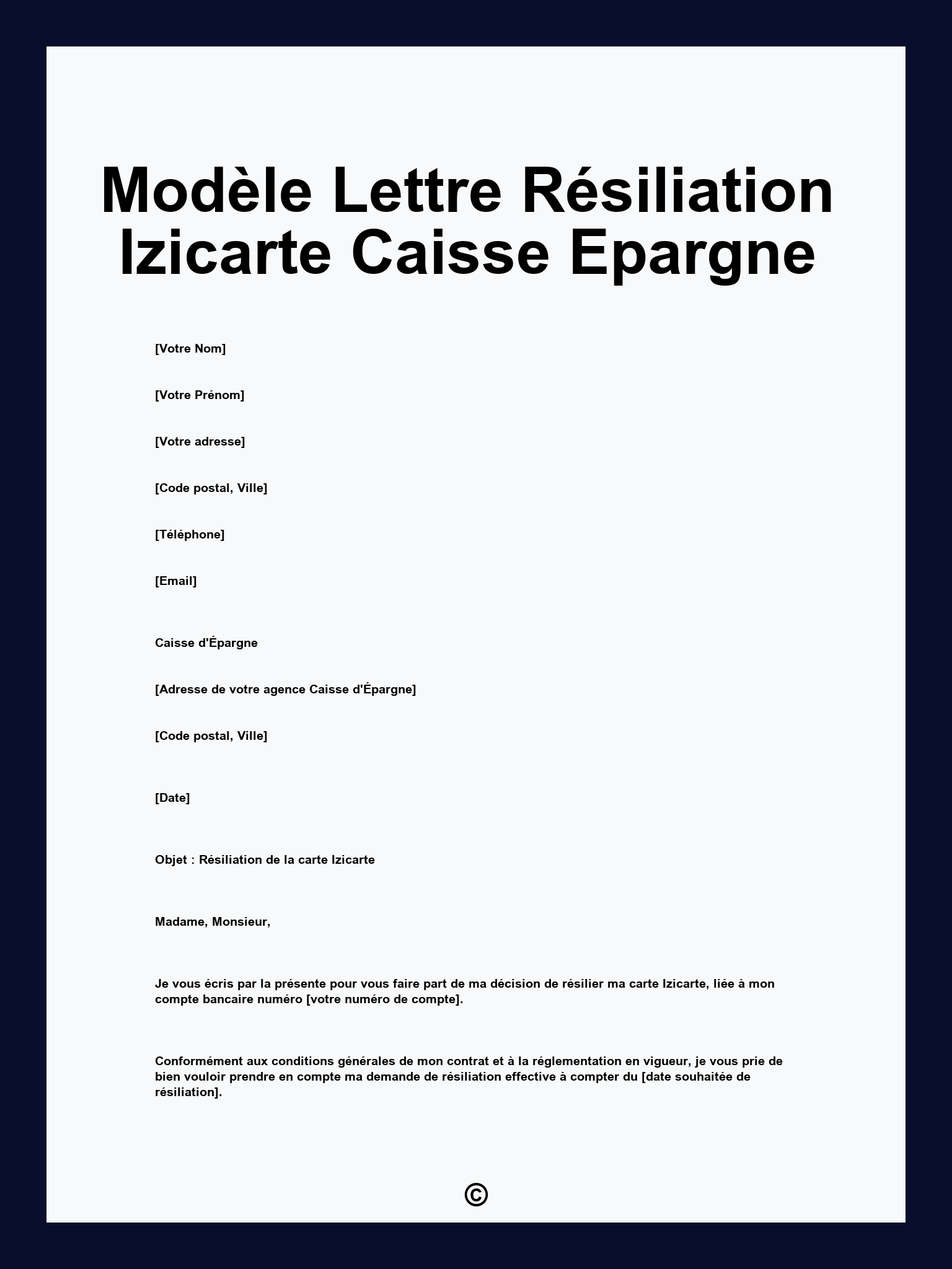 Modèle Lettre Résiliation Izicarte Caisse Epargne