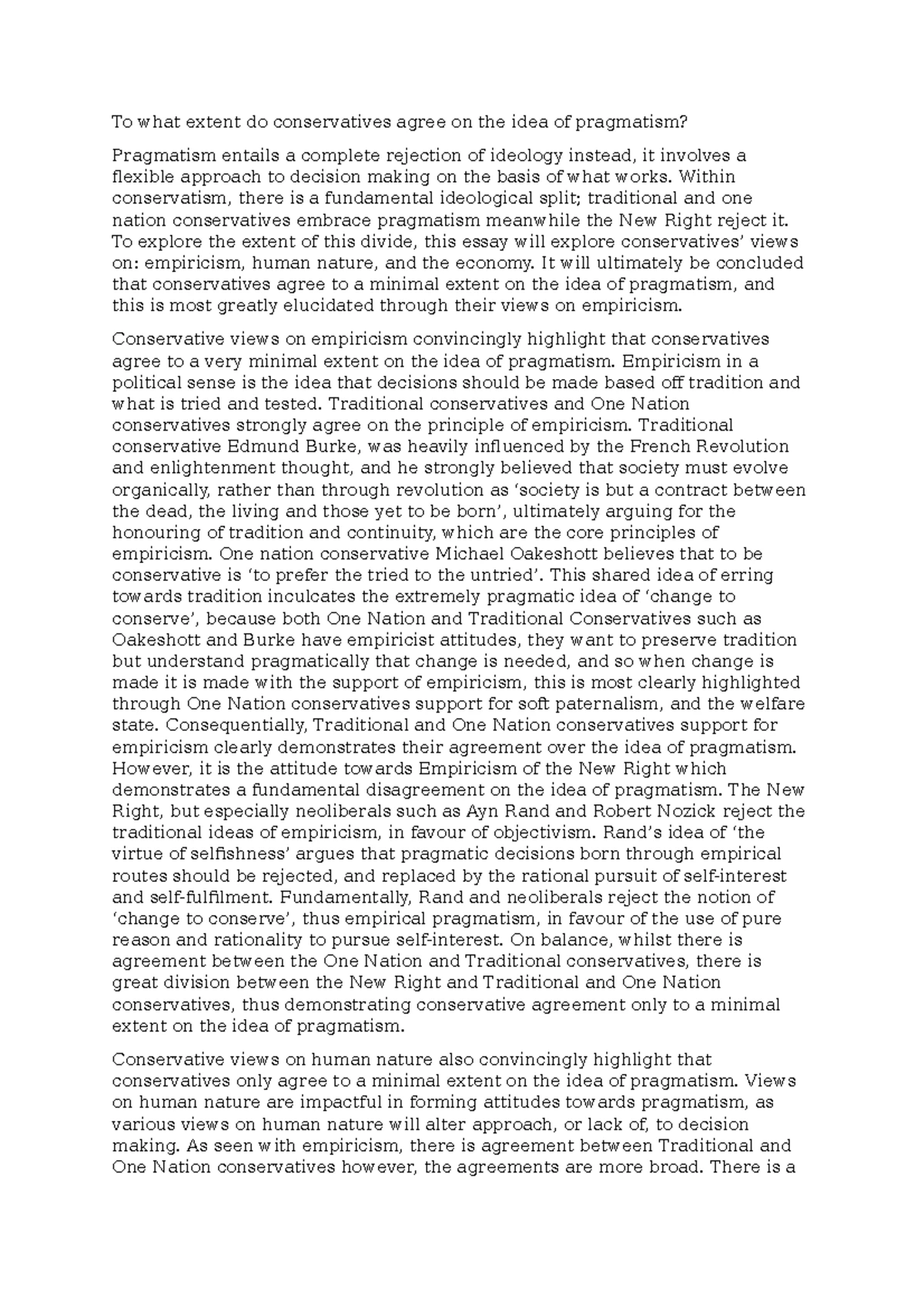 Conservatives society - To what extent are conservatives united in
