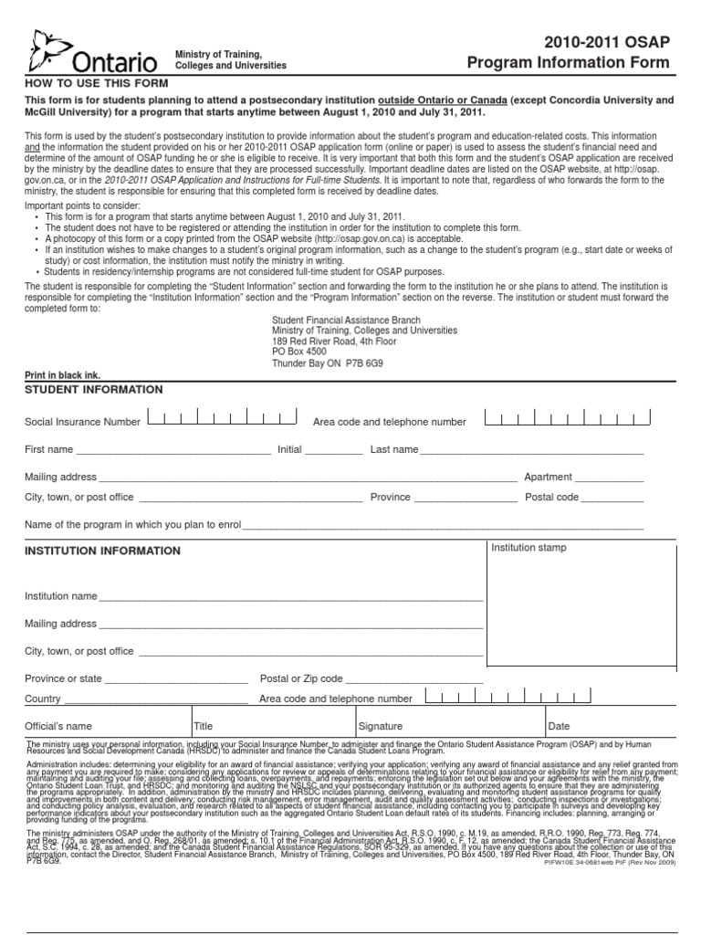 Osap Form To Print | PDF | Academic Degree | Undergraduate Education