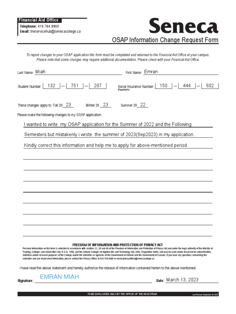 OSAP Information Change Request Form PDF | PDF | Privacy | Freedom Of
