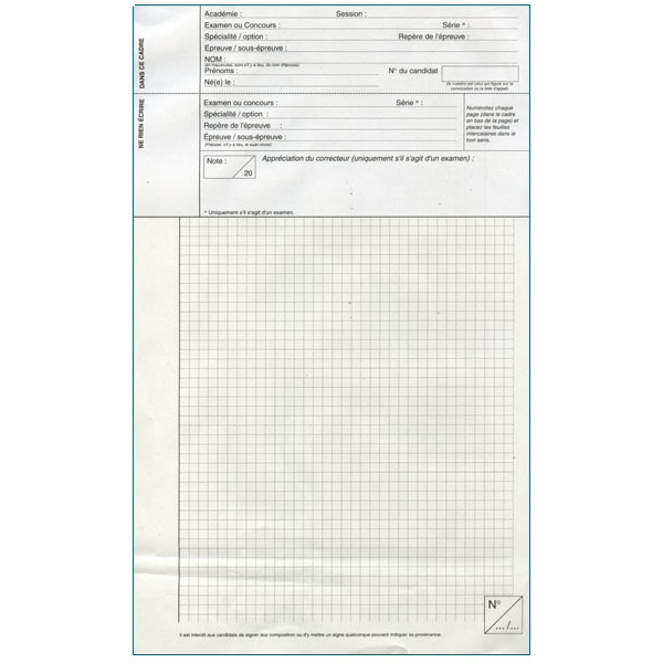Copie double d'examen verte Modèle Education Nationale - Paquet de 200