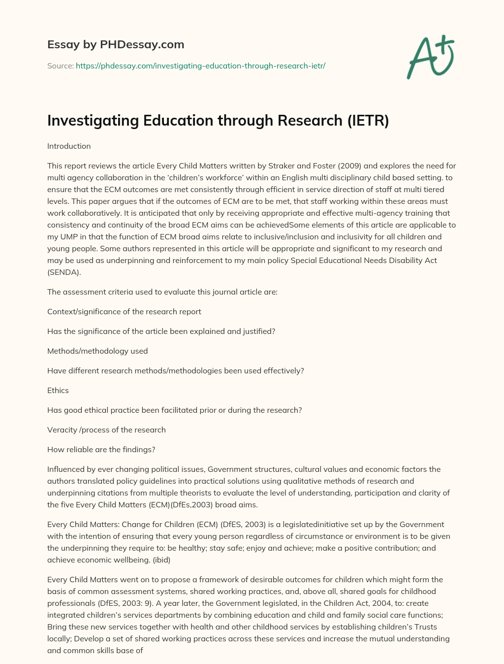 Investigating Education through Research (IETR) - PHDessay.com