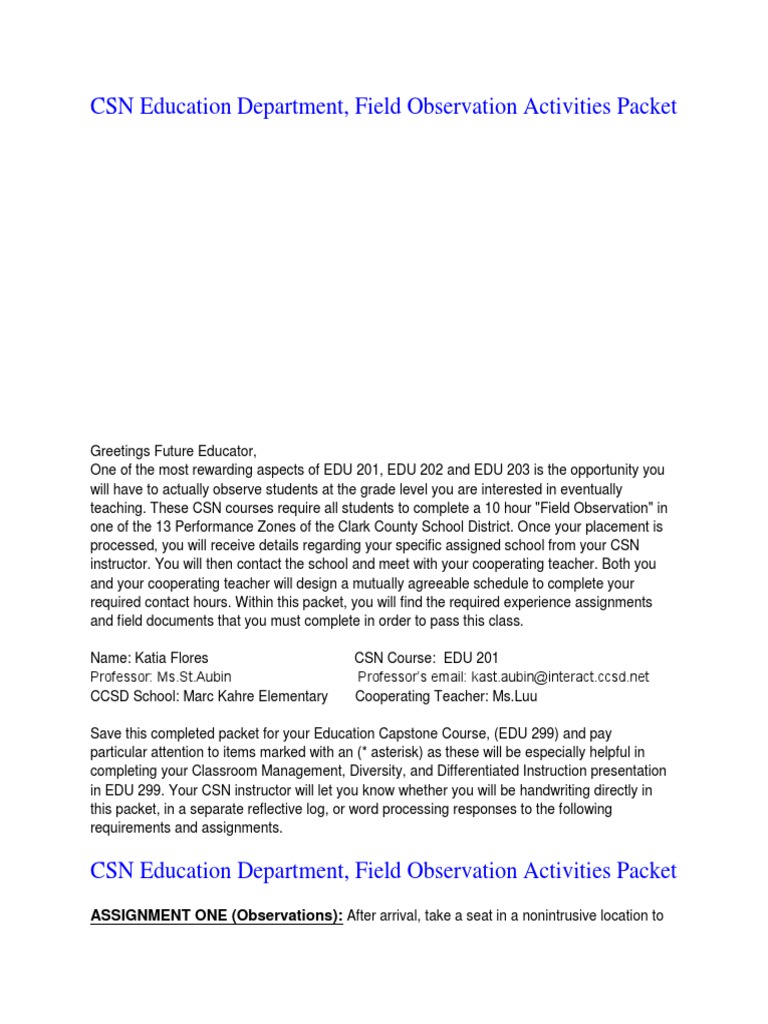 (PDF) NEW field observation packet - CSNEducation class. Show the