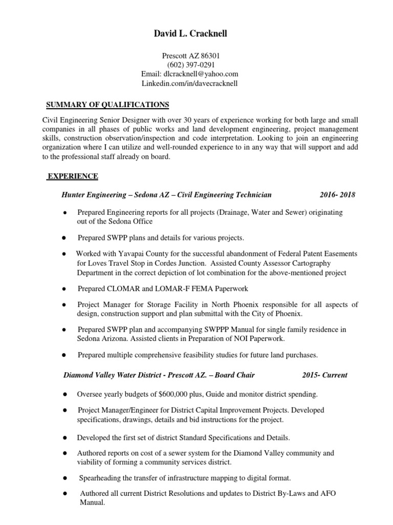 Civil Engineering Designer in Phoenix AZ Resume David Cracknell | PDF
