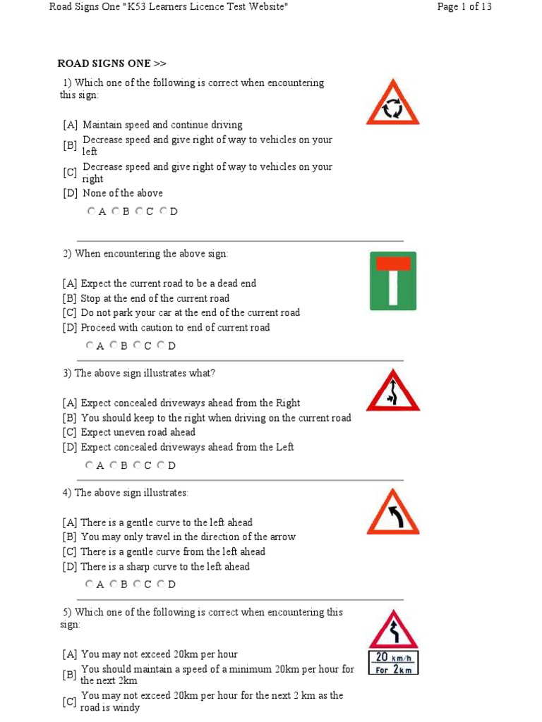 Road Signs One k53 Learners Licence Test Website | Traffic | Speed Limit