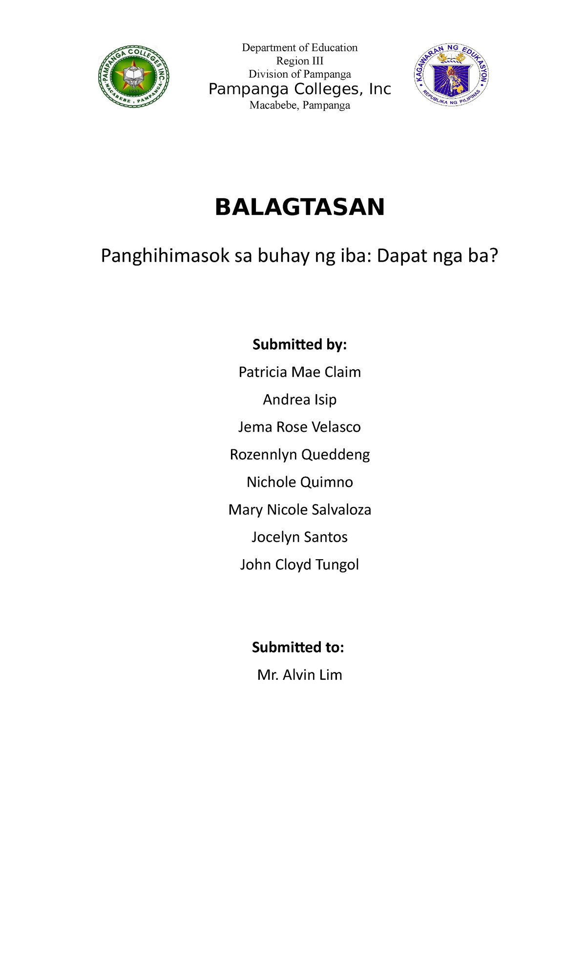 Script Balagtasan - Enjoy! - Department of Education Region III