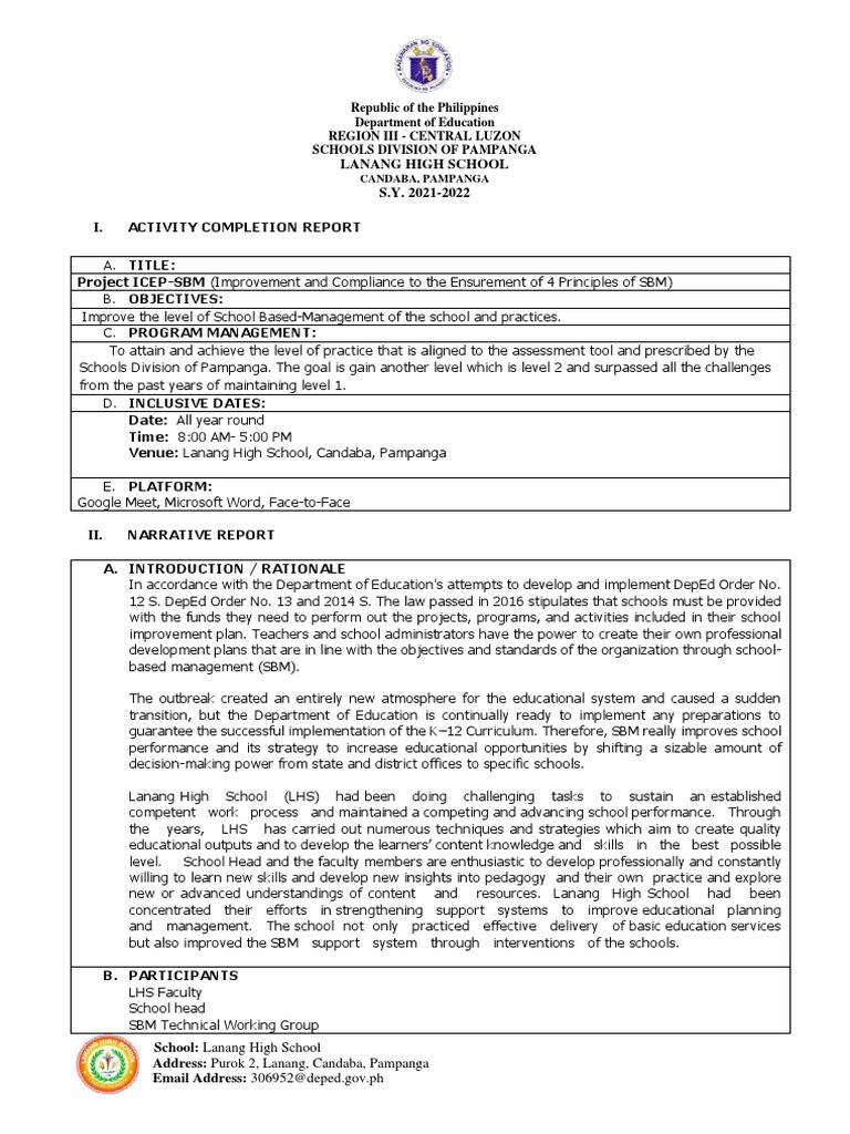 Reflection Paper - DEPARTMENT OF EDUCATION REGION III DIVISION OF