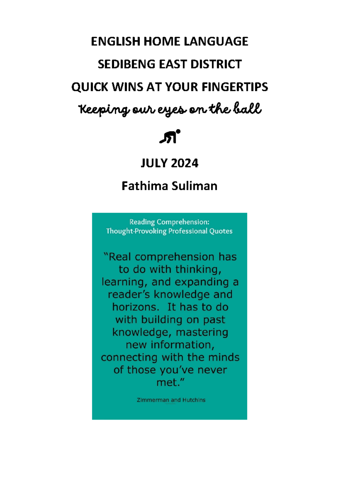Quick WINS AT YOUR Fingertips Sedibeng East District July 2024 English