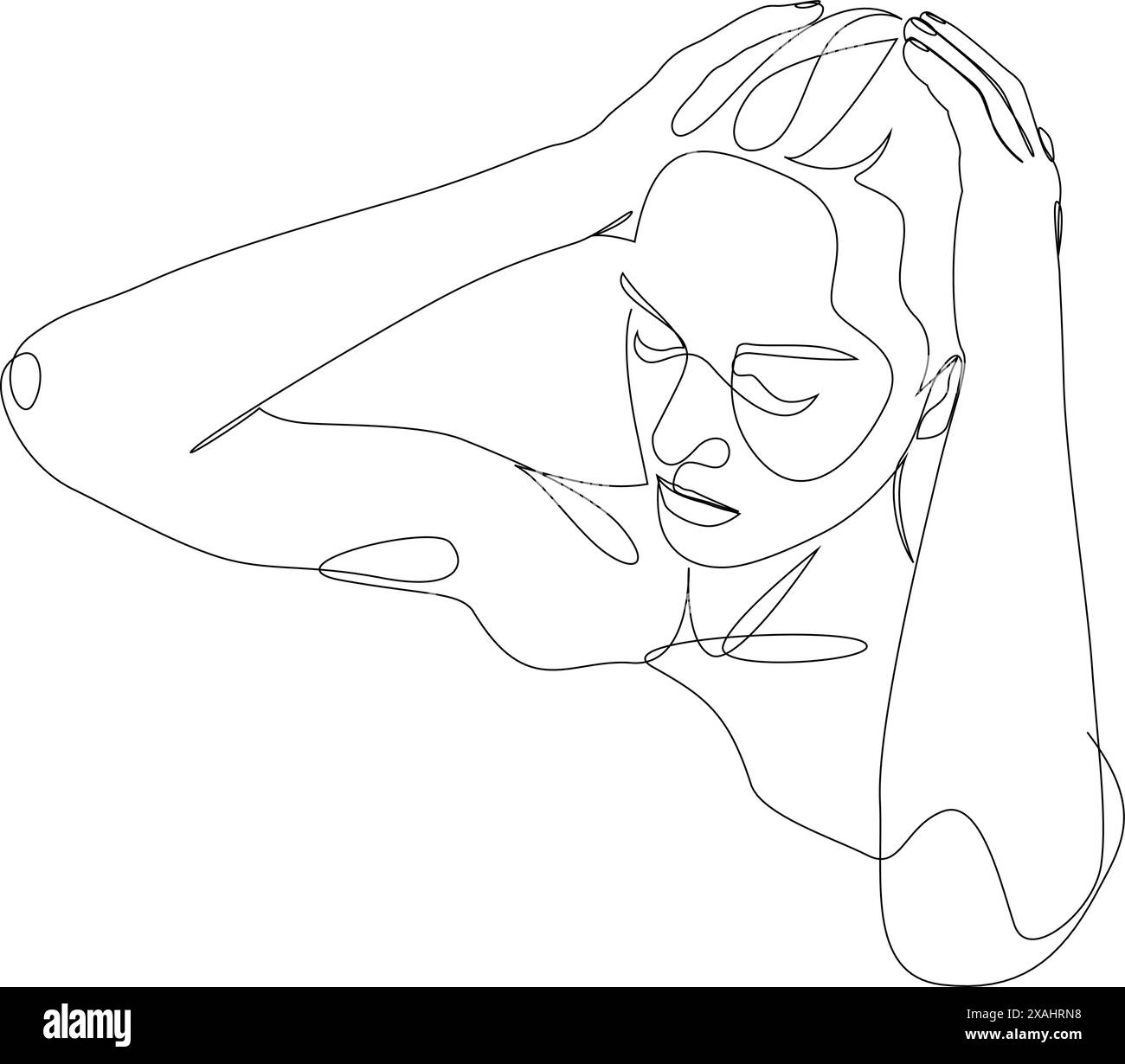 Woman taking spa bath continuous one line drawing. Concept of beauty