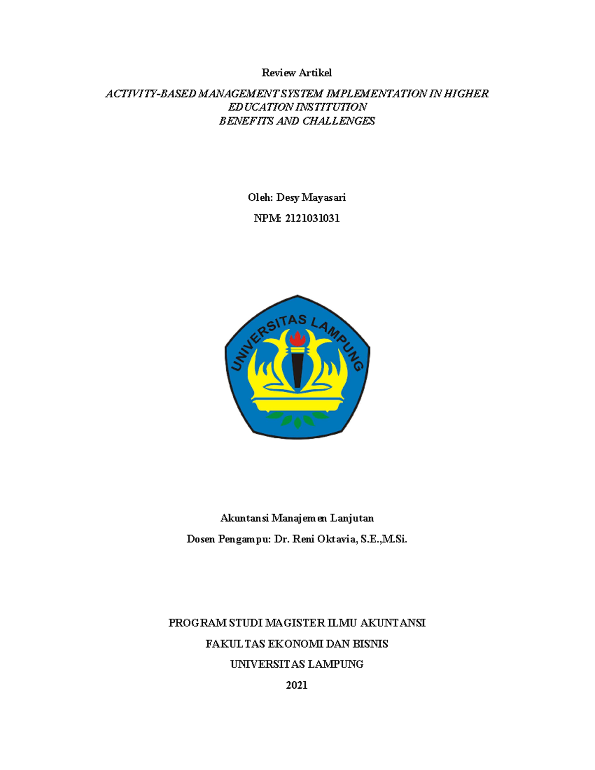 Desy Mayasari Activity-Based Management System Implementation In Higher