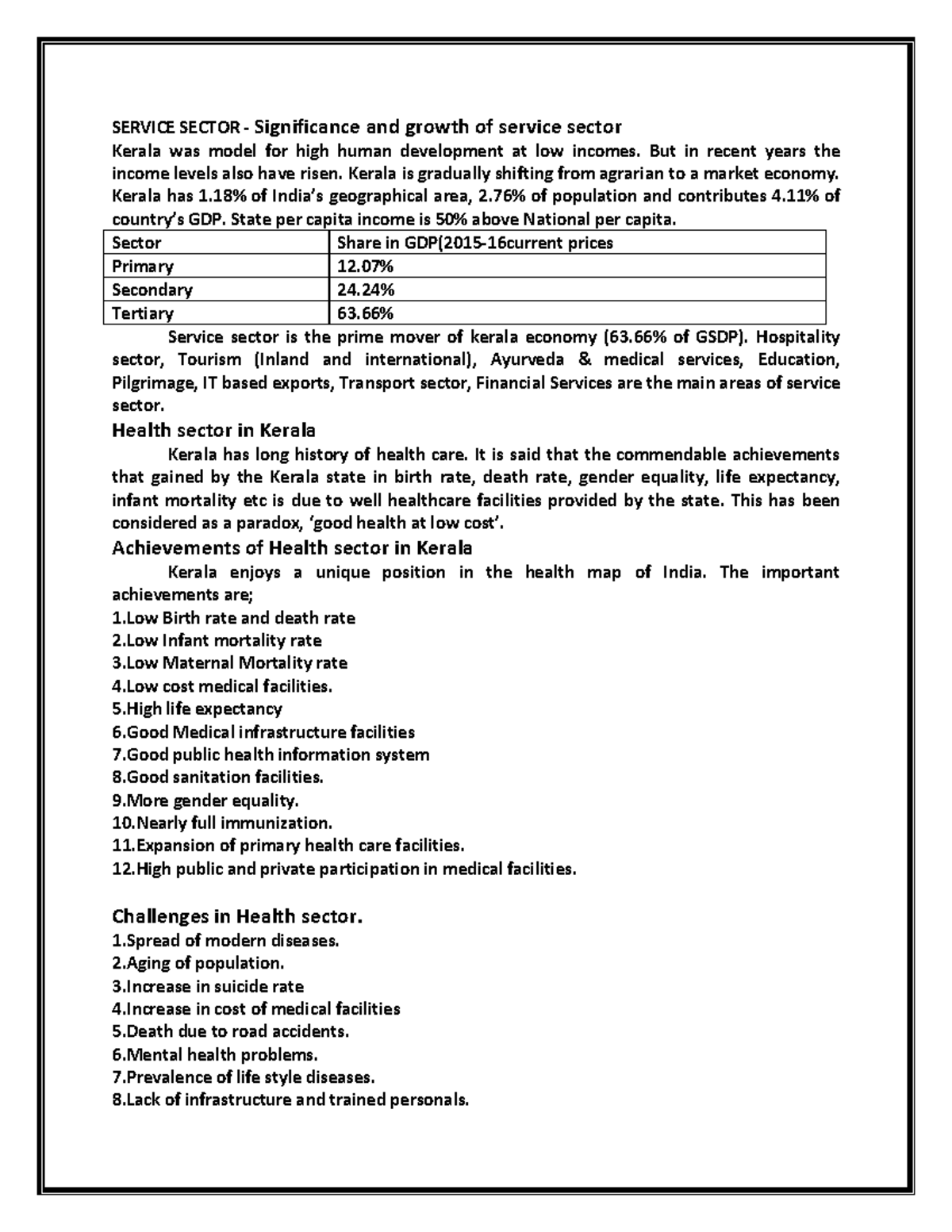 III BBA Kerala Econonomy - SERVICE SECTOR - Significance and growth of