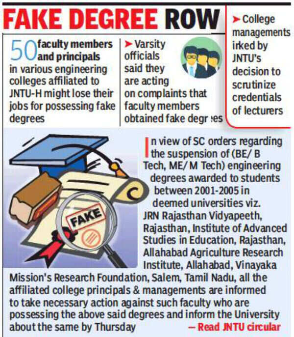 Fake degrees may cost 50 JNTU teachers their jobs | Hyderabad News