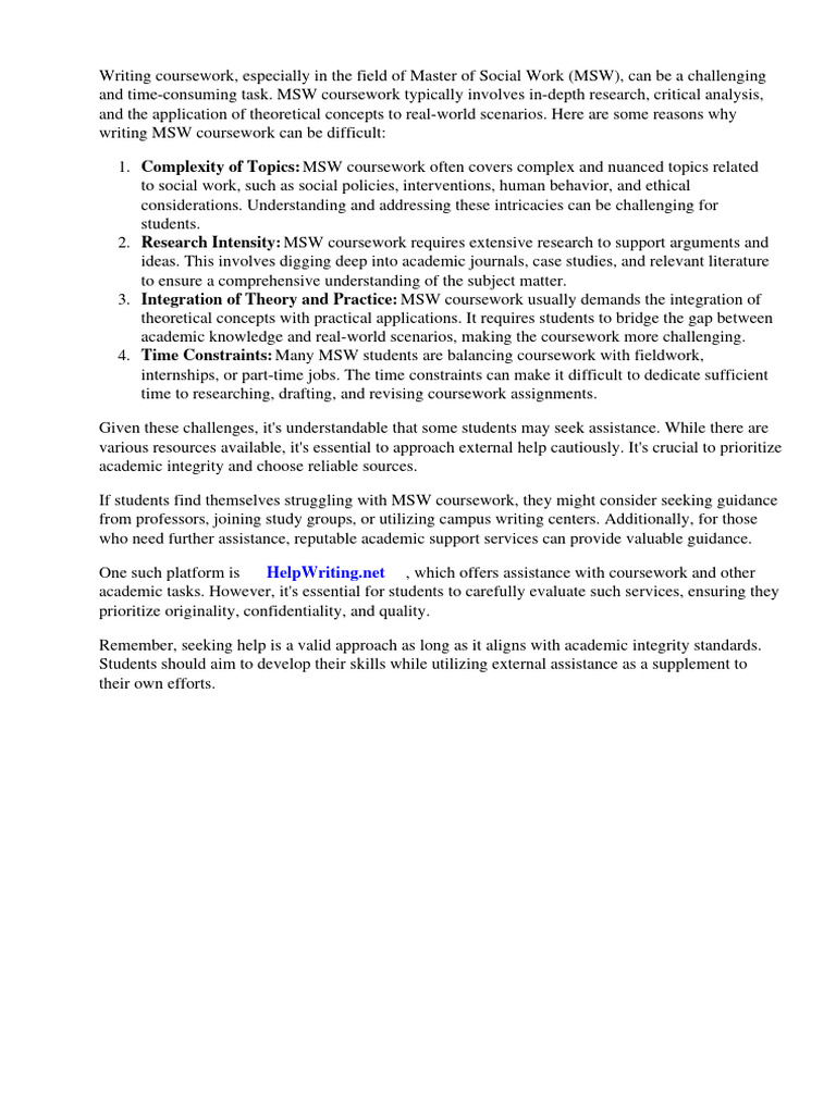 MSW Course Work | PDF | Social Work | Distance Education
