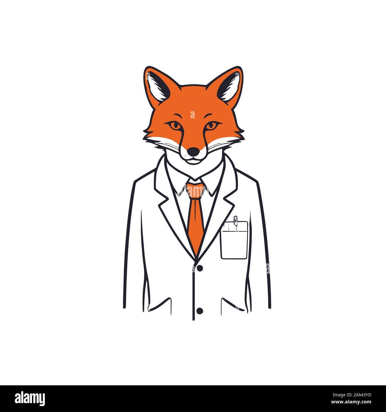 Fox Doctor or Lab Scientist Cartoon Character in White Coat. fox