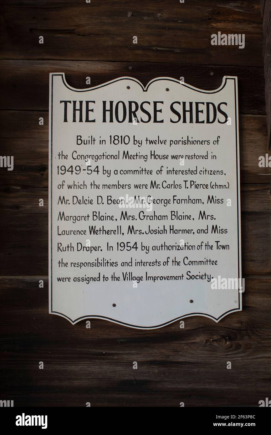 Sign at historic horse sheds in Jaffrey NH. The original sheds were
