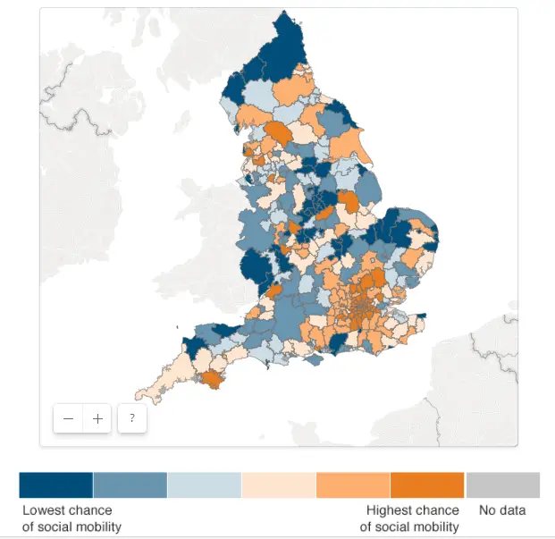 Social Mobility Highest Around London, Lowest in some Rural Areas