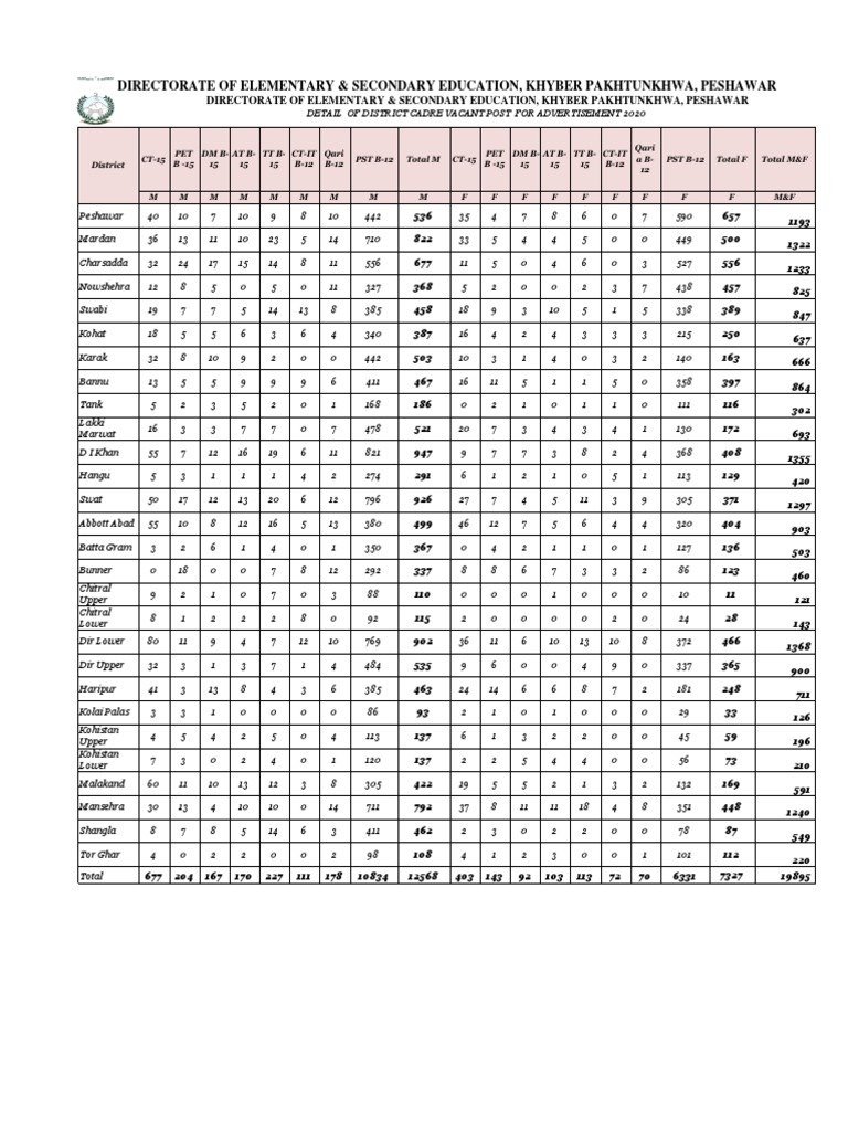 Government Jobs in 2020 Khyber Pakhtunkhwa Elementary and Secondary
