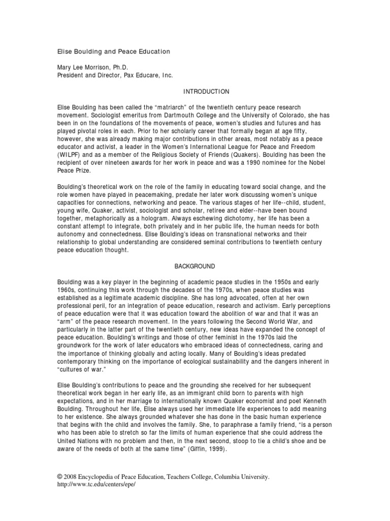 The Main Argument in "Peace Cultures" by Elise Boulding - 981 Words