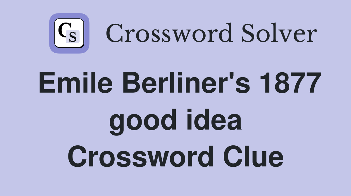 Emile Berliner's 1877 good idea - Crossword Clue Answers - Crossword Solver