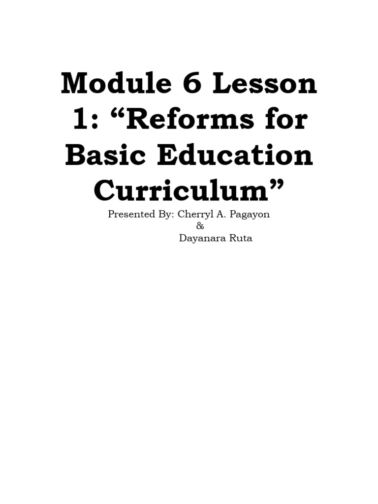 Enotes On Reforms of Basic Education Curriculum | PDF