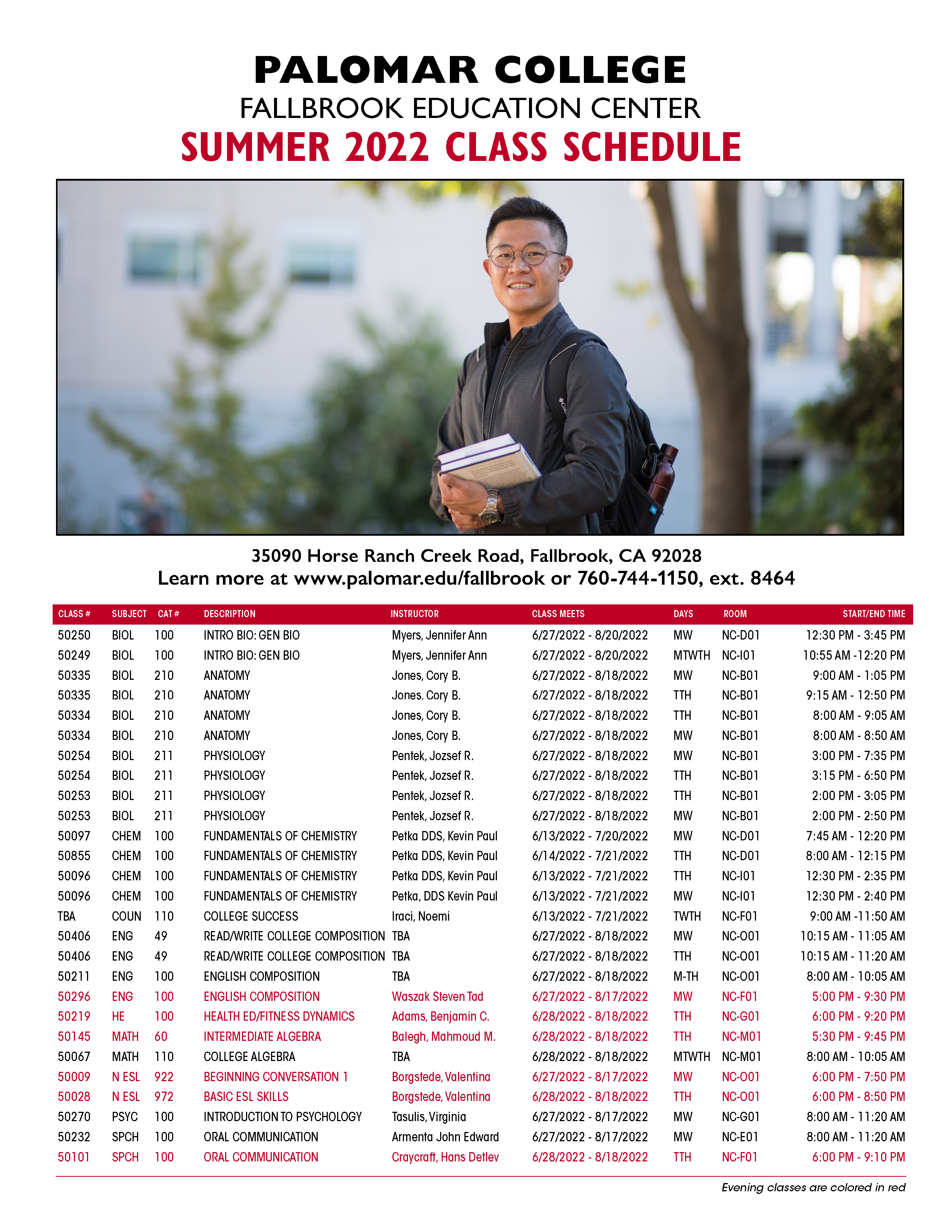 Palomar College Fallbrook Class Schedule - Fallbrook Education Center