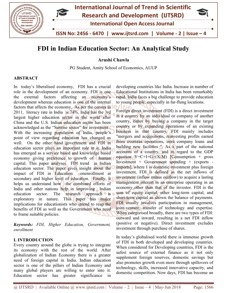 (PDF) FDI in Indian service sector -A critical analysis of prospective