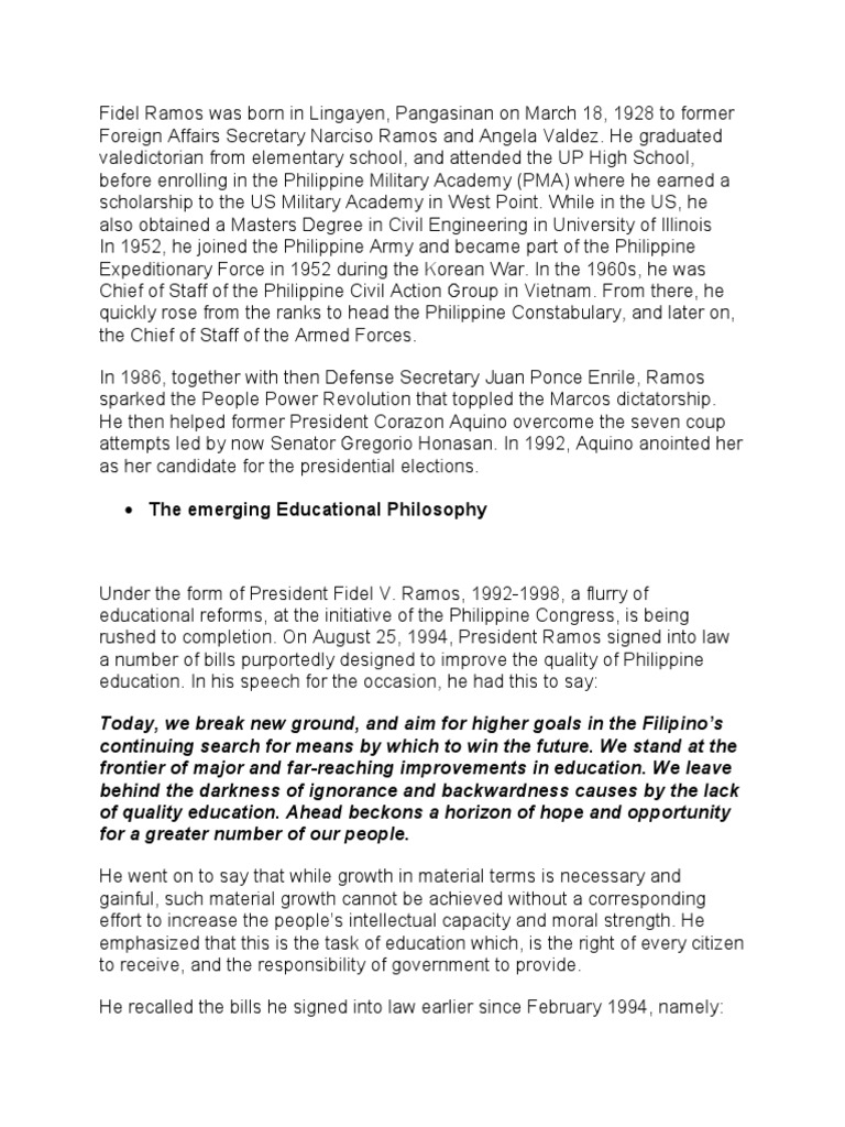 The Emerging Educational Philosophy Under President Fidel V. Ramos