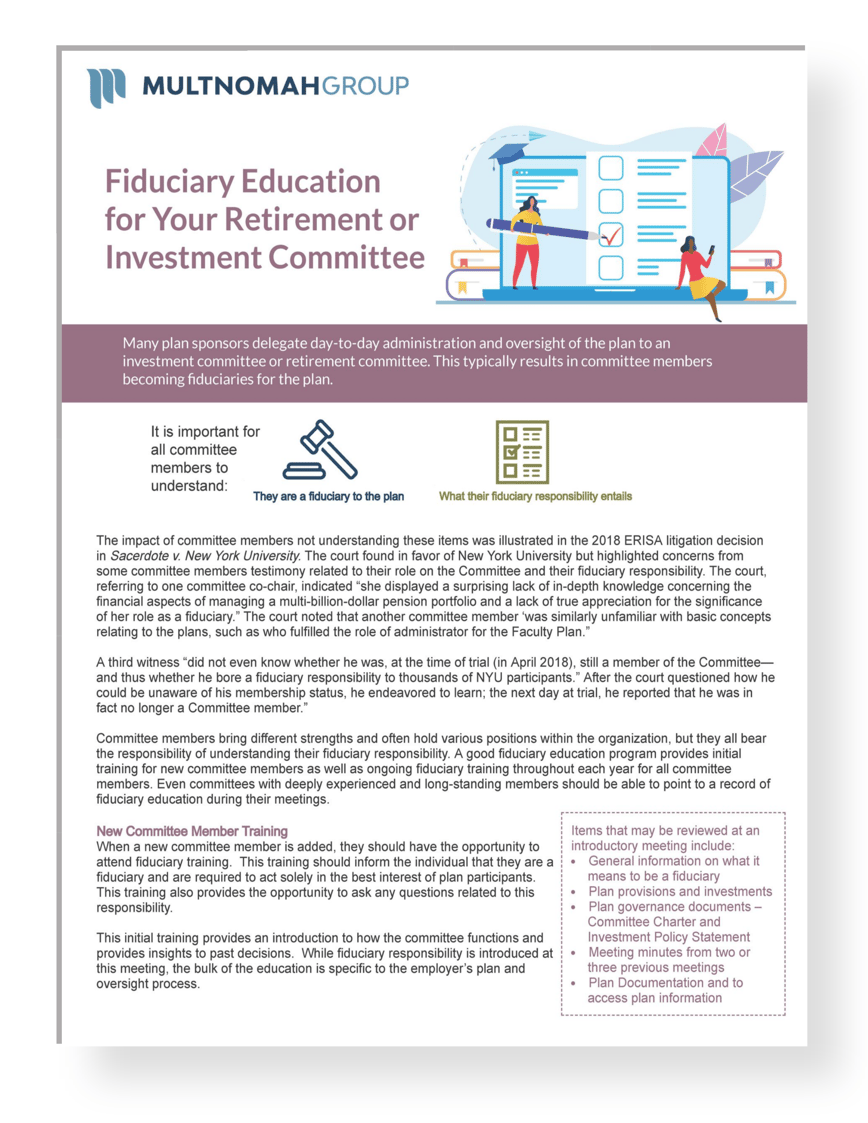 Fiduciary Education for Your Retirement or Investment Committee