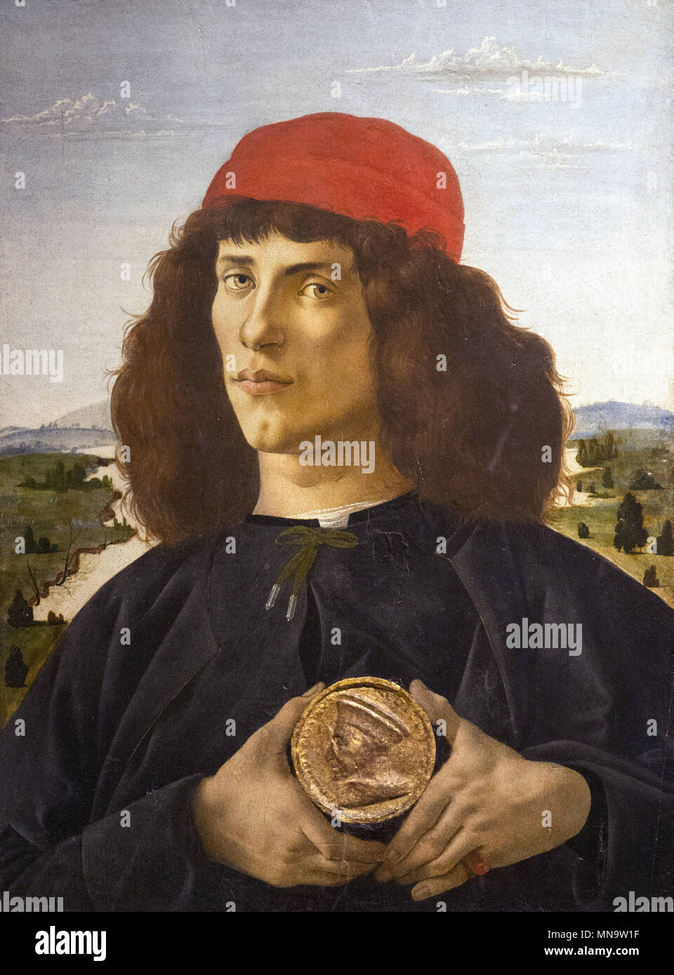Filippo Lippi - Portrait of a young man holding a medallion - C.1475