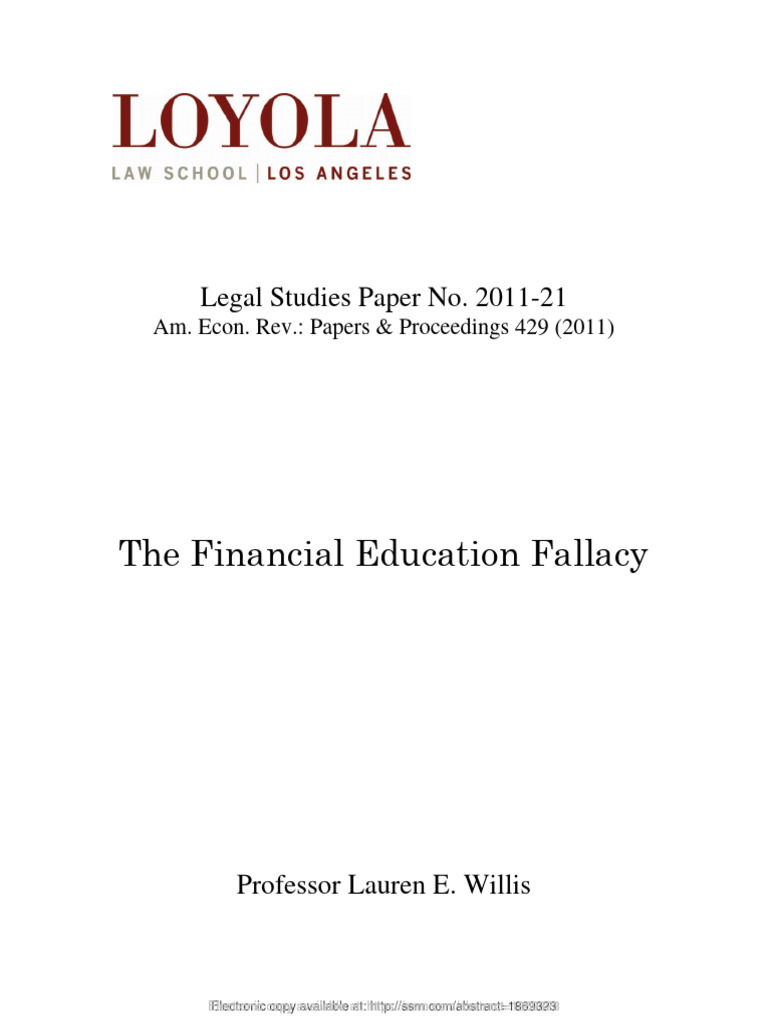 The Financial Education Fallacy (Lauren Willis 2011) | Download Free