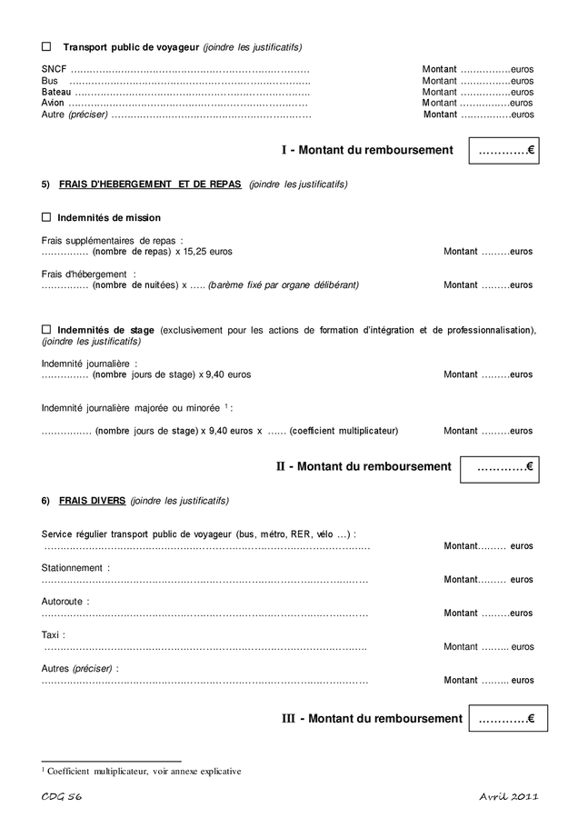 Etat des frais de déplacements - demande de remboursement - DOC, PDF