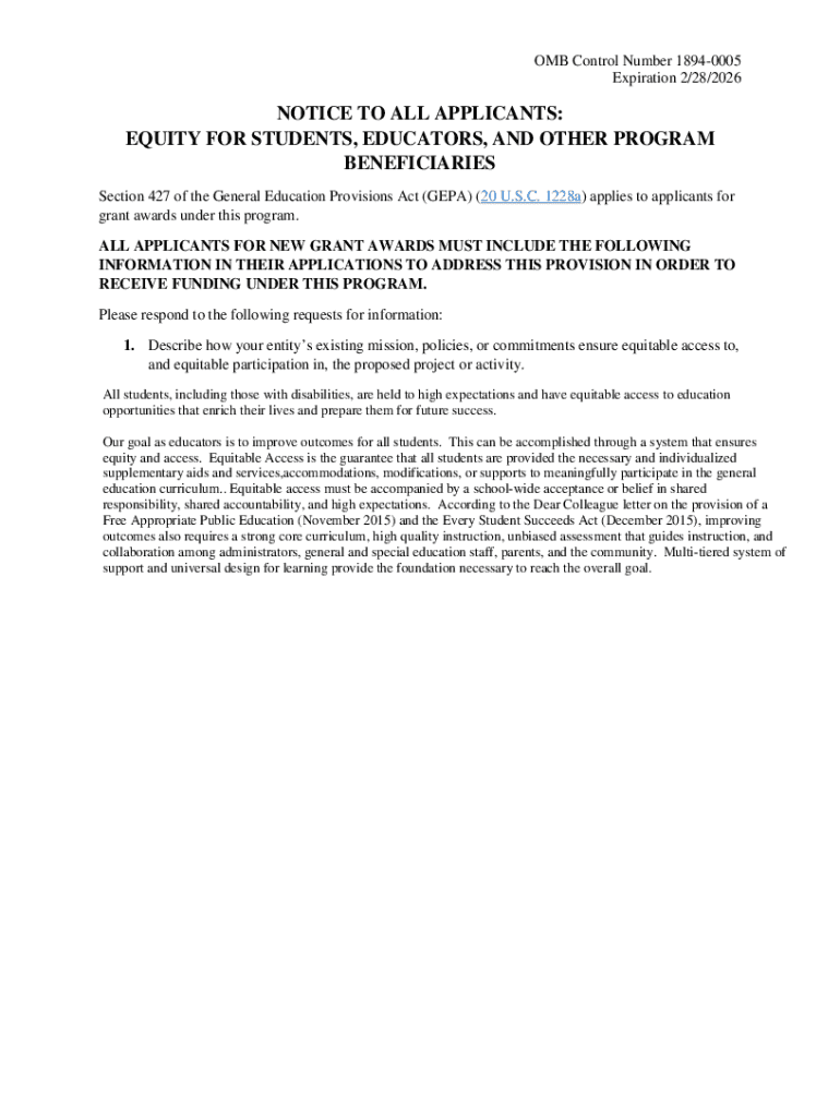 Section 427 of the General Education Provision Act Doc Template | pdfFiller