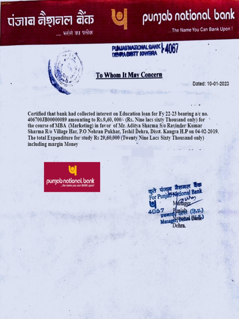 Education Loan Interest Certificate | PDF