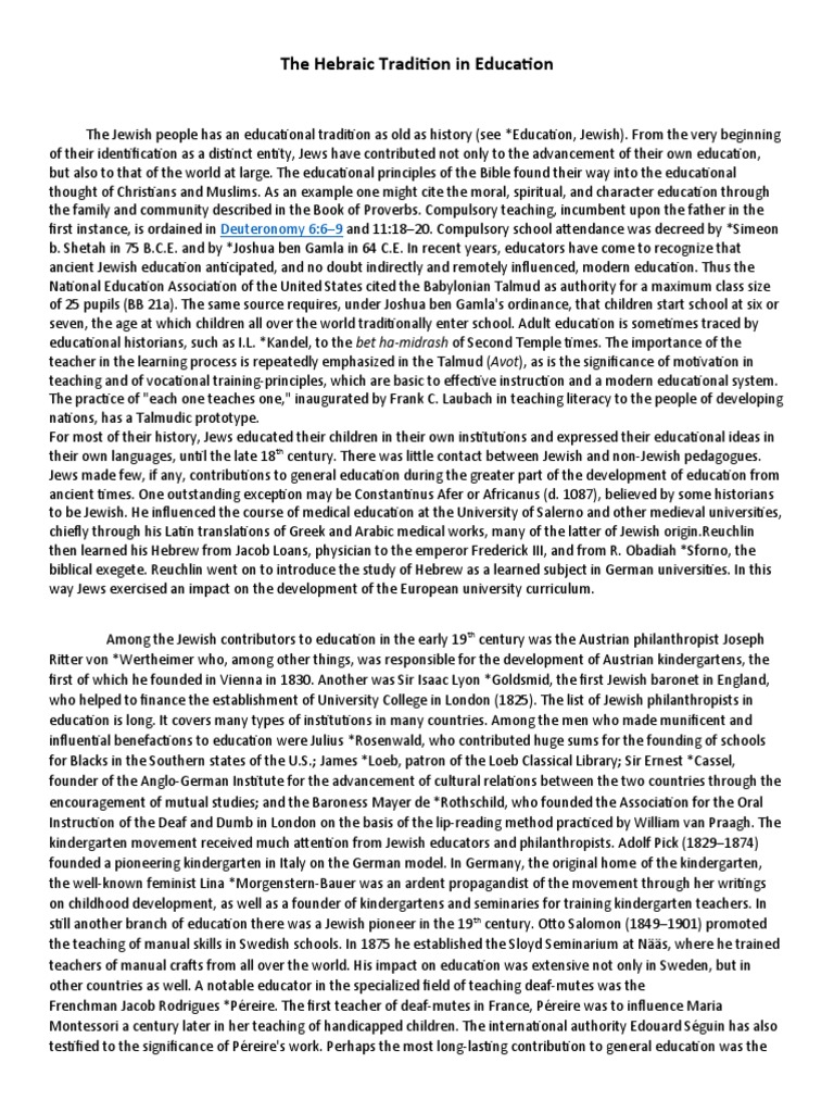 The Hebraic Tradition in Education | PDF | Jews | Talmud