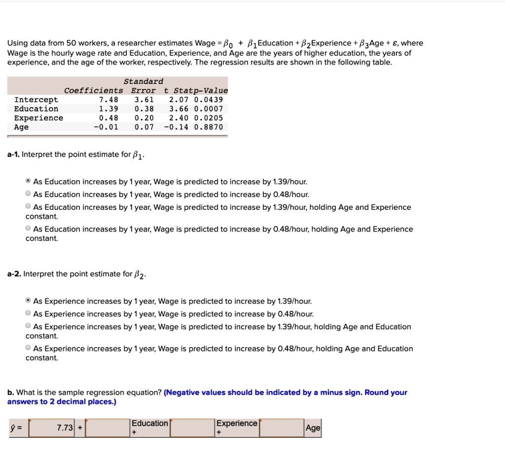 [GET ANSWER] using data from 50 workers researcher estimates wage bo